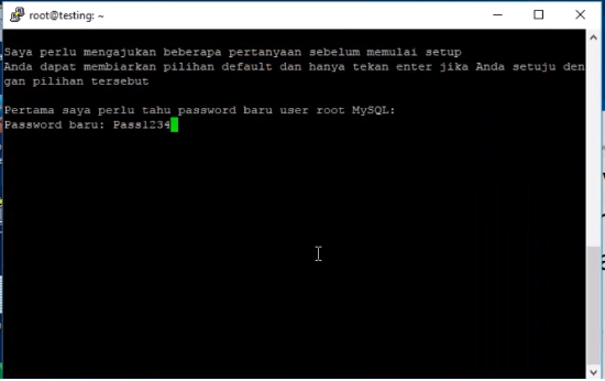klik enter untuk melanjutkan - Silahkan masukan password baru untuk MySQL databasenya
