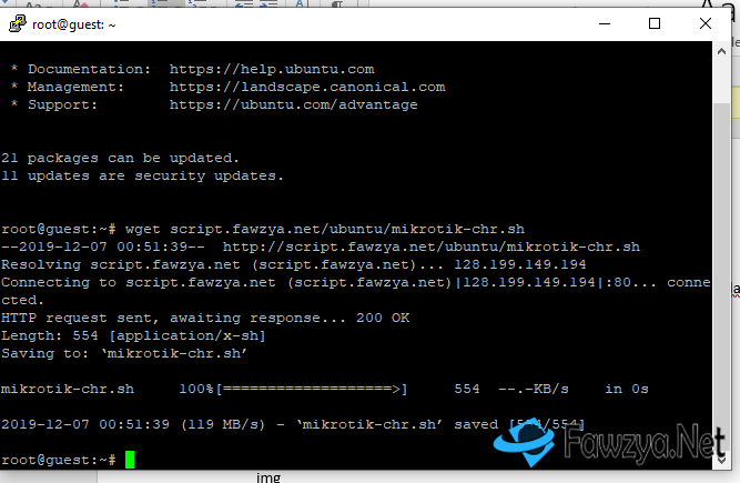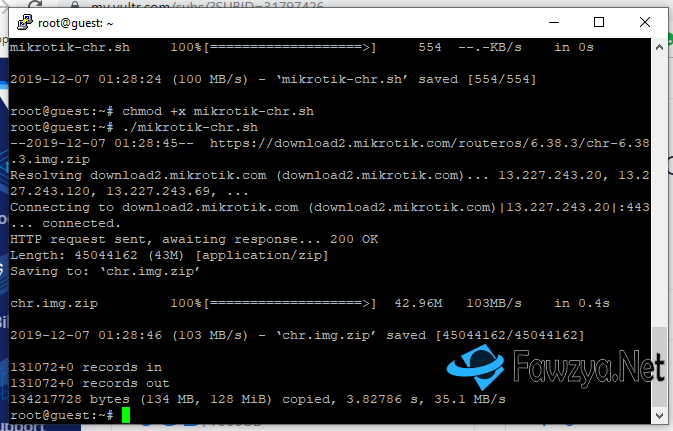 wget script.fawzya.net/ubuntu/mikrotik-chr.sh