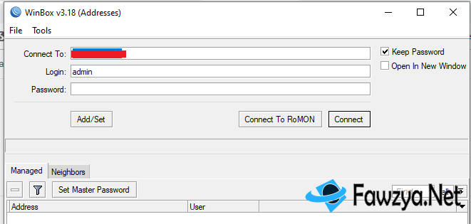 Berikut tampilan winbox apabila installasi sudah berhasil