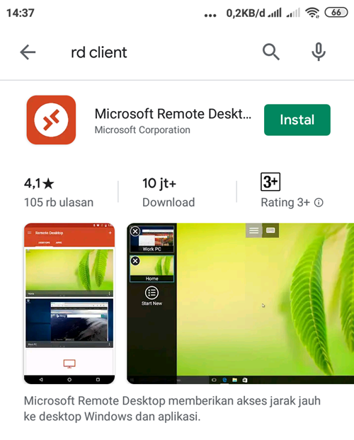 Lalu klik install pada aplikasi yang bernama Microsoft Remote Desktop - Buka Aplikasinya, klik Accept