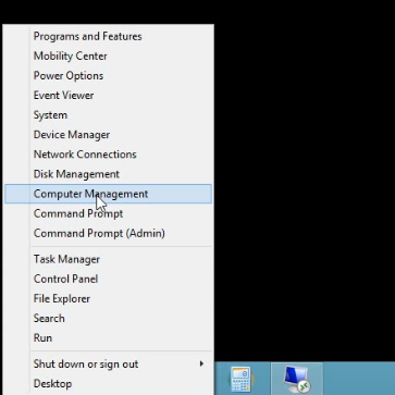 Klik kanan pada start menu di pojok kiri bawah, Klik Computer management
