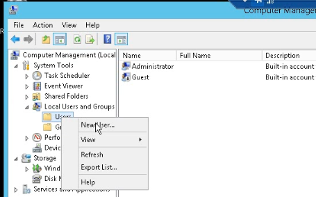 - Klik Local User & Groups, klik kanan pada Users, klik new user