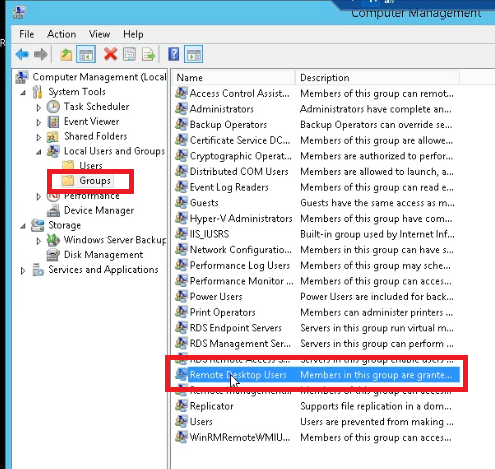- Masuk Ke Groups, Klik remote Desktop User