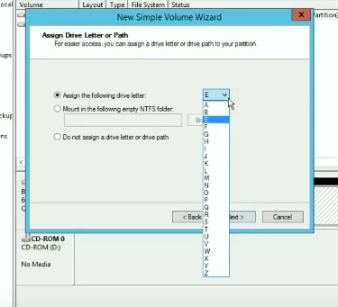 klik next lagi - Pada bagian assign the following drive letter ini menunjukan Path local disk yang akan digunakan.