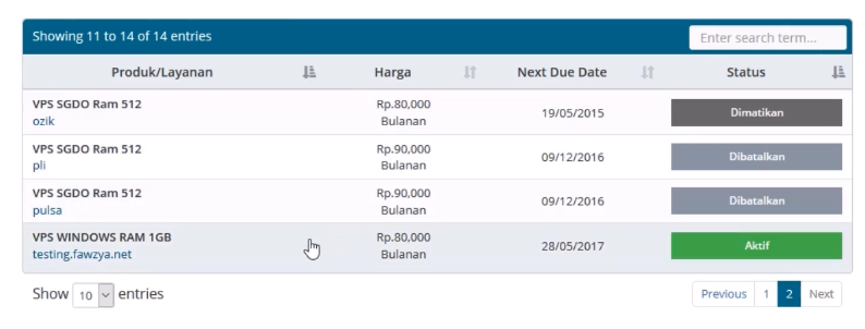 - Akan muncul detail Produk VPSnya