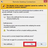 - Bila ada notifikasi tentang pemberitahuan sertifikat silahkan klik yes