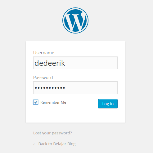 - Silahkan anda login ke halaman administrator, gunakan username dan password seperti yang sudah anda buat :