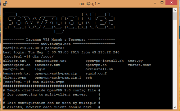 Tetapi bagi anda yang berlangganan VPS di Fawzya.Net akan di beri jasa Installasi openVPN, SSH, Squid Webmin.dll semua tidak perlu anda repot repot menginstallnya